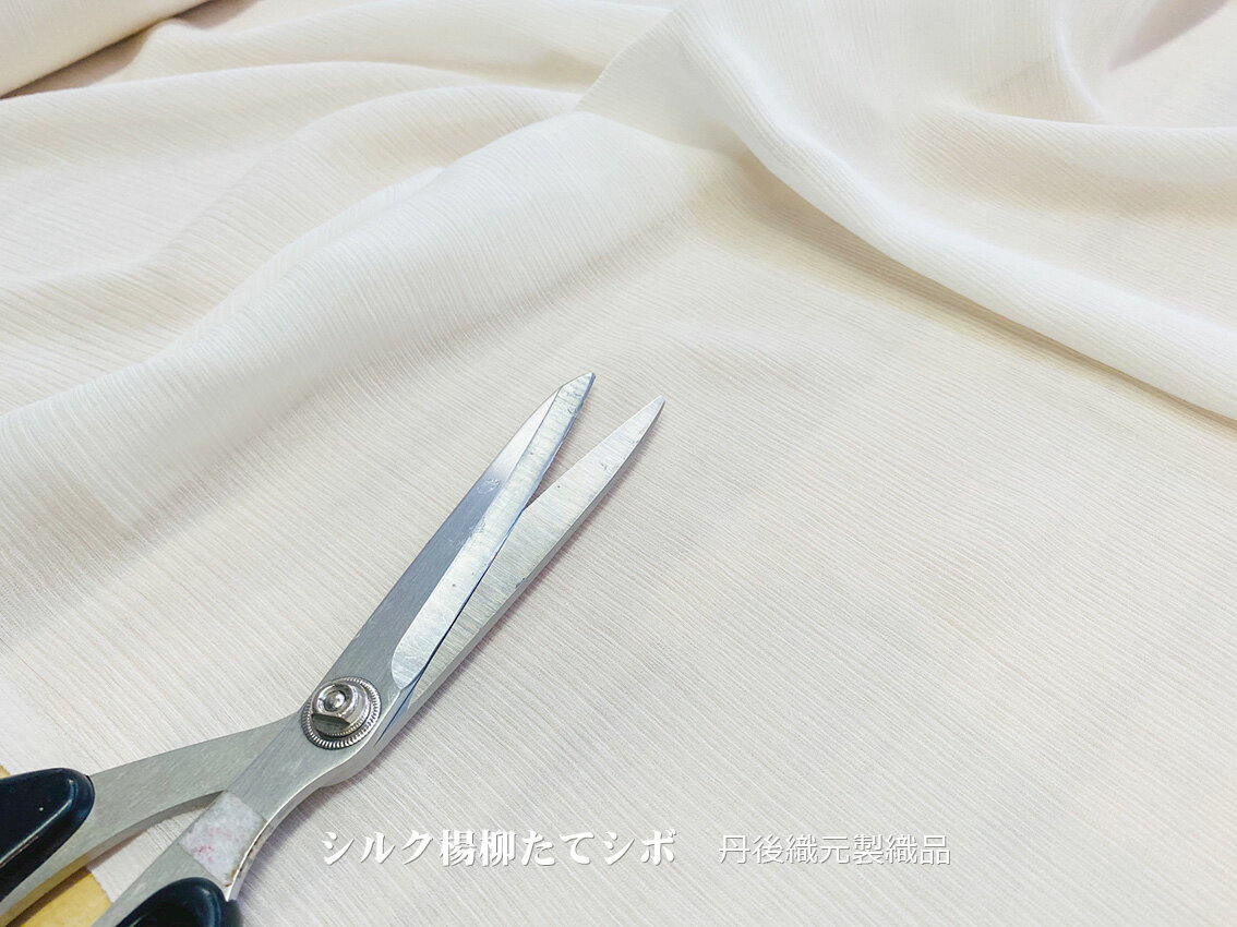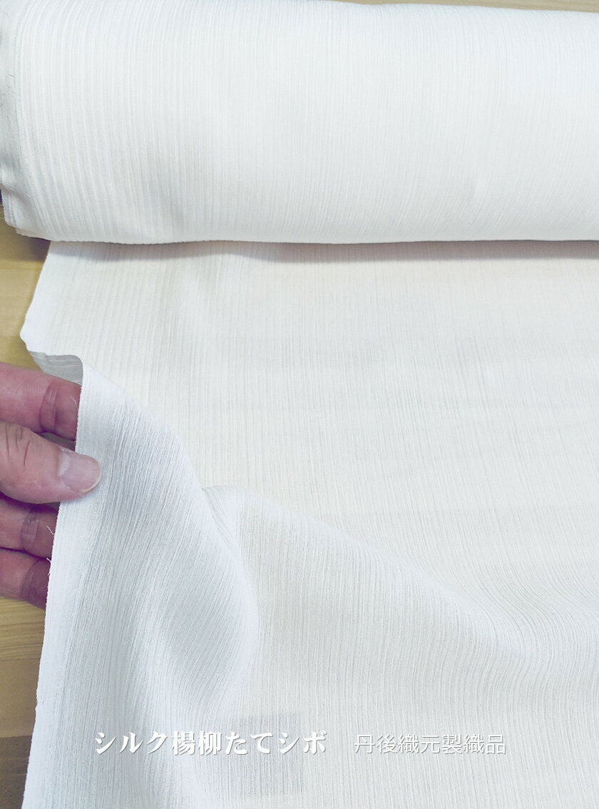 手作りマスク スカーフ マフラー ショール ブラウス用途/シルク楊柳たてシボsilk100%白生地生成り色 14匁 115cm幅 やや透け感のある肌触りの良い生地/ 丹後織元シルク工場在庫処分/再精練・湯のし済/草木染めできます1m単位 切り売り切売