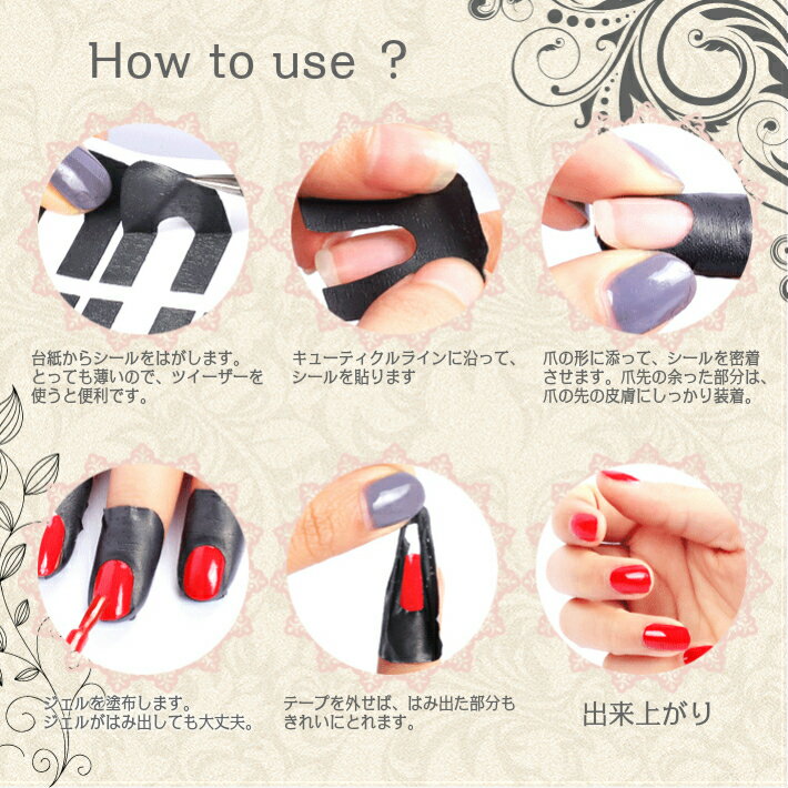 ITEM DETAIL 商品名 ネイルプロテクター ピールオフテープ 内容量 シート1枚(指10本分) 色 6色 (紫・ピンク・赤・黒・青・緑) ※ブラウザやモニタの設定等により商品のカラーが実物と異なって見える場合がございます。