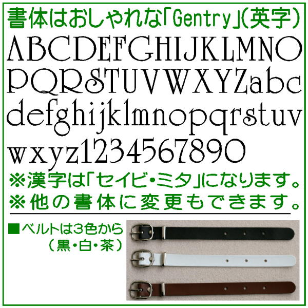 ■書体について ・文字は横書きの英字、書体はおしゃれな「Gentry」という書体になります。