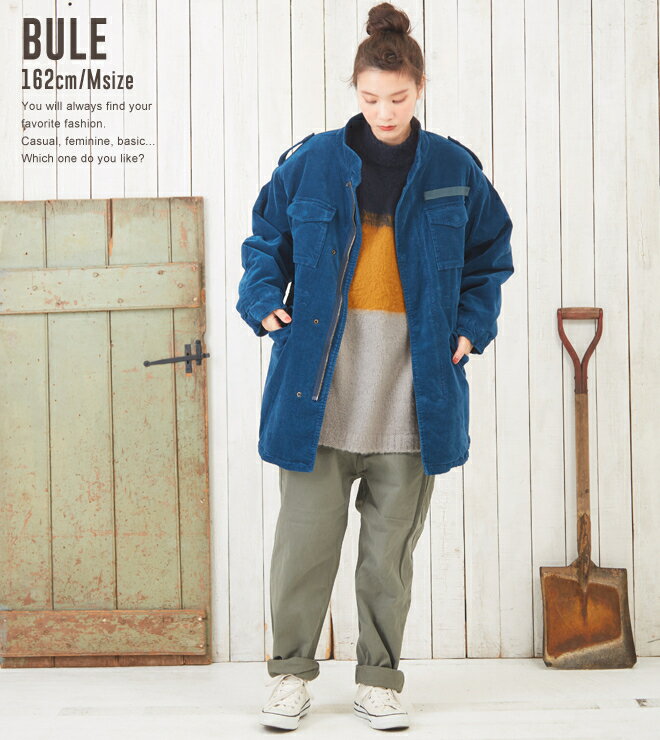 メーカー希望小売価格はメーカー商品タグに基づいて掲載しています この商品のメーカー希望小売価格はこちらからご確認ください 商品番号:78075966 商品カテゴリ: チャコール ブラウン ブルー グレー 灰色 茶色 キャメル 青 ネイビー 紺 無地 シンプル ワンカラー アウター 羽織 ミリタリー コート ポケット 裏ボア 防寒 スタンドカラー ドロップショルダー 別珍 コーデュロイ ベルベット ベロア M Mサイズ 大きいサイズ ビッグシルエット 大きめ ゆったり 長袖 長そで 重ね着 プルオーバー レディース 女性 OL カジュアル アメカジ ウィメンズ 冬 秋 秋冬 大人ナチュラル コーディネート 大人カジュアル 人気 定番 可愛い かわいい かっこいい お洒落 おしゃれ 大人 個性的 ユニーク 生地 トレンド 新作 新着cube sugar evo.(キューブシュガーエボ) 別珍+裏ボアミリタリーコート (3色) ■別珍×裏ボアの異素材デザインで楽しむミリタリーアウター コーデュロイのような起毛感をもつ別珍で仕立てたロングコートが登場。