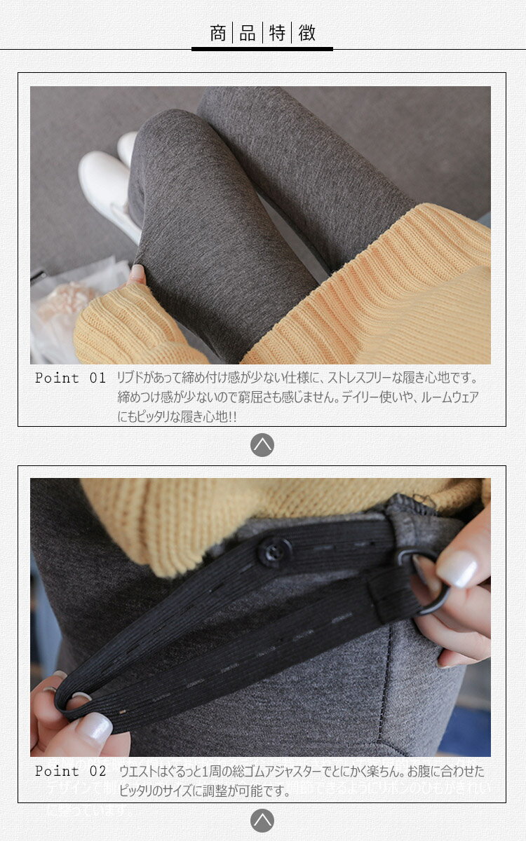 商品名 マタニティリブ レギンス(裏起毛/スリム) 素 材 綿95% サイズ M/L/XL/2XL カラー LightGray/DarkGray/Black 備考 シーズン問わず活躍する! ほど良くしっかりとした素材感のコットン×スパンリブテレコ。