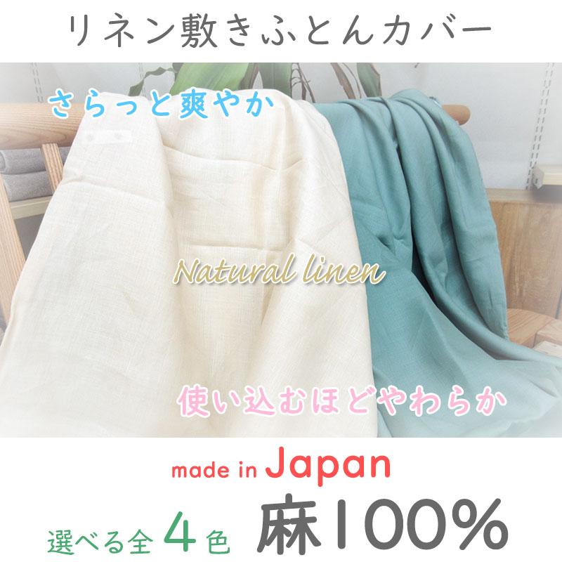 選べる4色!! リネン 敷きふとんカバー シングル 麻100% 【日本製】ナチュラルリネン 無地/リネン100%/麻/天然/105×215/カバー/SL/丸洗い/ふとんカバー/吸湿速乾/シンプル/ヒンヤリ/掛布団カバー