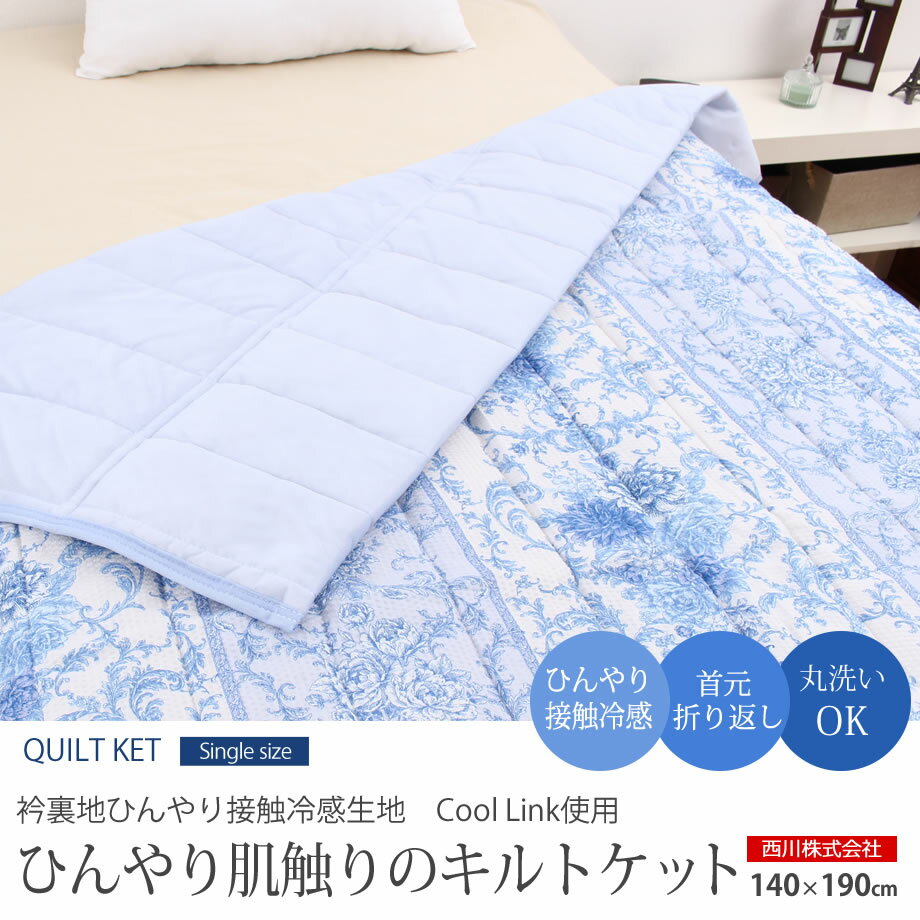 ひんやりキルトケット 冷感 西川製 洗える キルトケット シングルサイズ 140×190 夏用 冷たい 布団 肌掛け 接触冷感 ひんやり