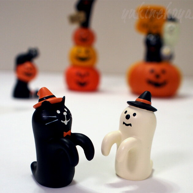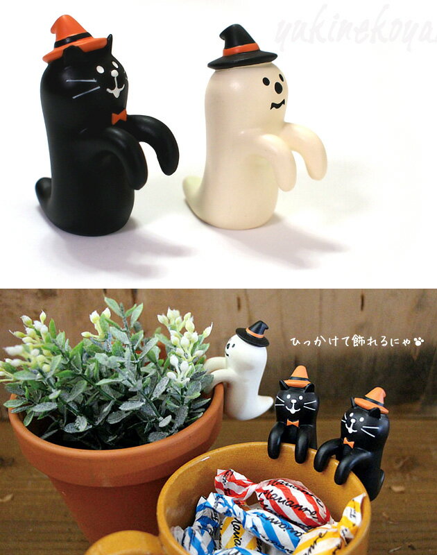【猫のマスコット・置物】HELLO,HALLOWEEN! 正座でうらめしやデコレ(DECOLE)concombre まったりマスコット(みけねこ黒猫・ゴースト 猫雑貨 ねこ雑貨 ネコ雑貨 猫グッズ ねこグッズ ネコグッズ キャット)