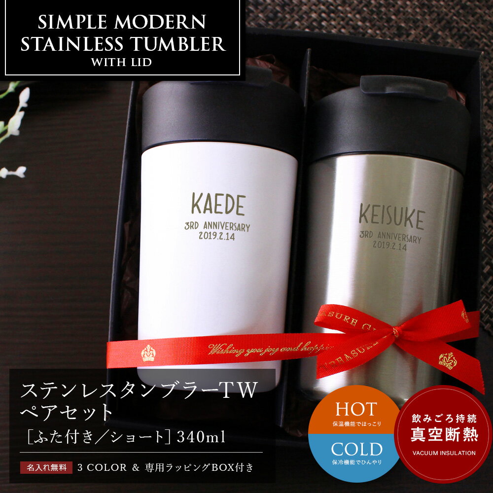 【名入れ タンブラー】ペアギフトセット ステンレスタンブラーTW[ふた付き/ショート]340ml【結婚祝い プレゼント 友人 おしゃれ 贈り物 おすすめ 食器セット コーヒー ビール 酒 真空断熱 保冷 保温 真空断熱タンブラー 記念品 誕生日 こぼれない】