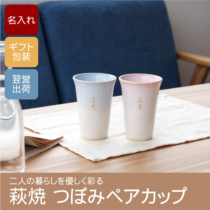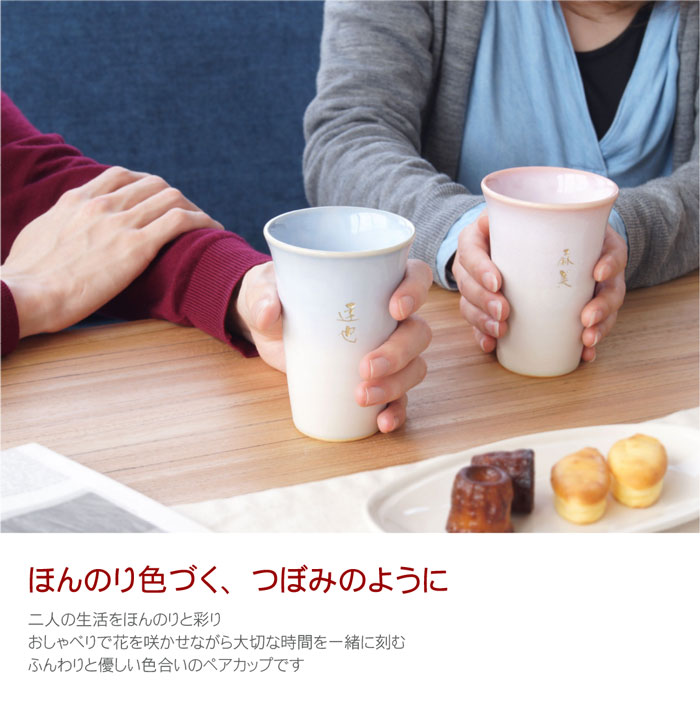 出荷日からお届けまでの目安はコチラ >> 商品情報 【 名入れ 萩焼 つぼみ ペアカップ 240ml 】 つぼみのように、ほんのりと色づいた優しい色合いのペアカップ。
